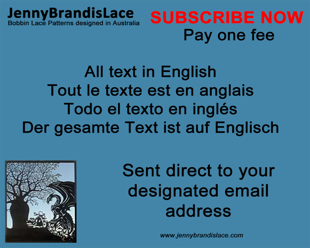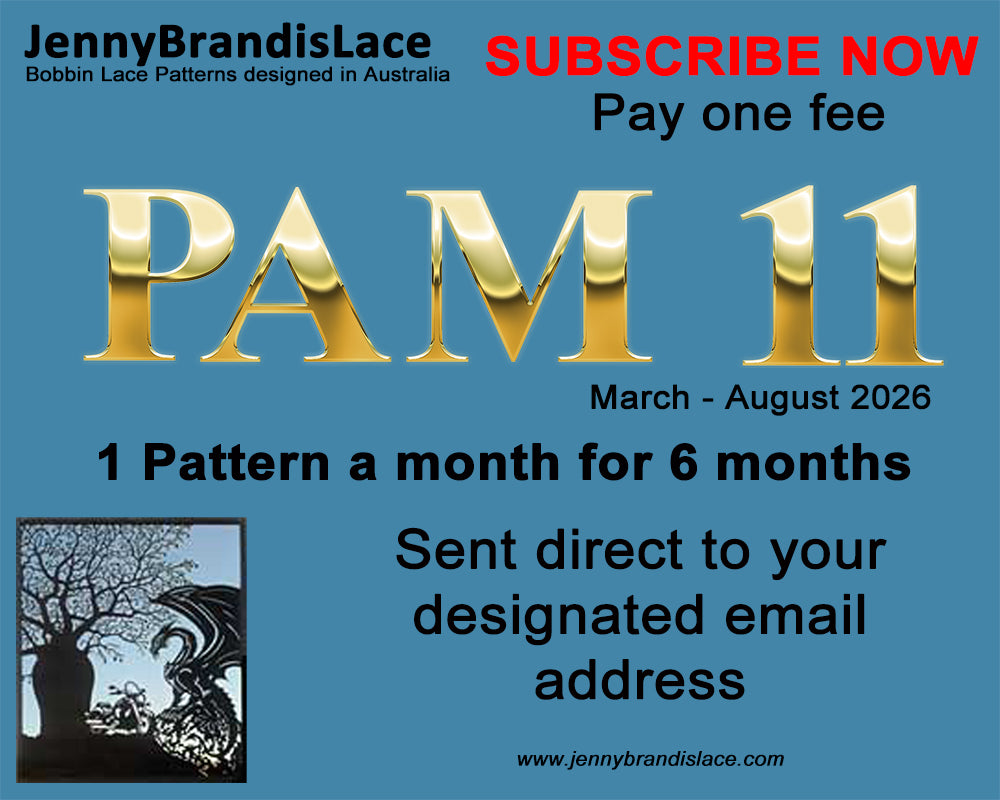 Inspiring new bobbin lace patterns emailed direct to your inbox each month from the designer.
